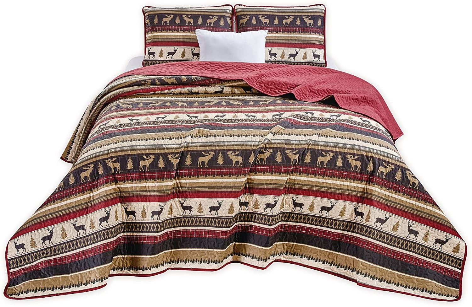 Chezmoi Collection Rustic Lodge Forest Wildlife Moose Deer Microfiber Printed Quilted Bedspread Set Twin 2 Piece Walmart Com